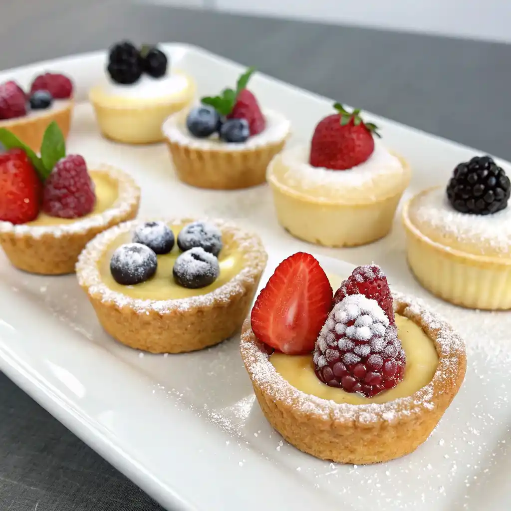 - Fruit Tartlets: Tiny pastry shells filled with custard and fresh fruits.