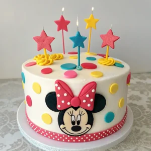 - Minnie’s Polka Dots: Incorporate fun polka dot patterns on the cake and accessories, making it look playful and vibrant.