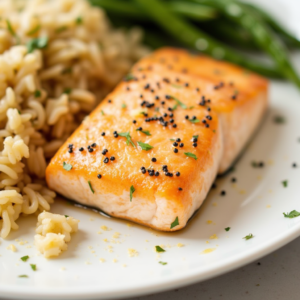 Once both the salmon and rice are cooked, it’s time to combine them. Serve the rice as a base, topping it with the perfectly cooked salmon. Garnish with fresh herbs like dill or parsley and a squeeze of lemon juice for added freshness.