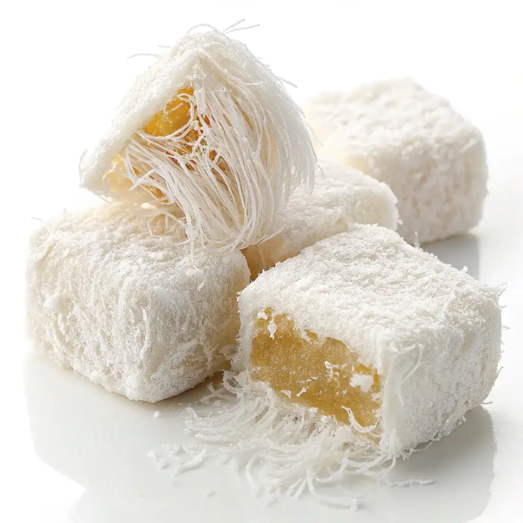 Dragon’s beard candy, also called “dragon whisker candy,” comes from ancient China’s imperial courts. Its name comes from its fine strands that look like a dragon’s whiskers. It’s soft, airy, and a true delight for your senses.