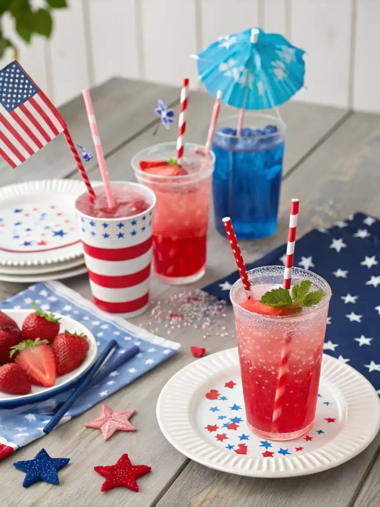 - Add fun straws and flags—paper straws with stars, mini American flags, or sparkler-style toppers elevate the festive mood.