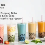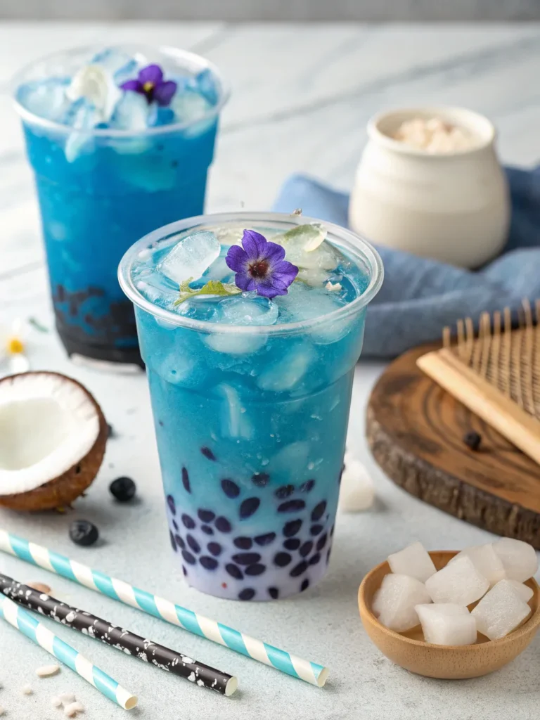 • Coconut Butterfly Pea Flower Boba Tea – magical colors with a tropical vibe.