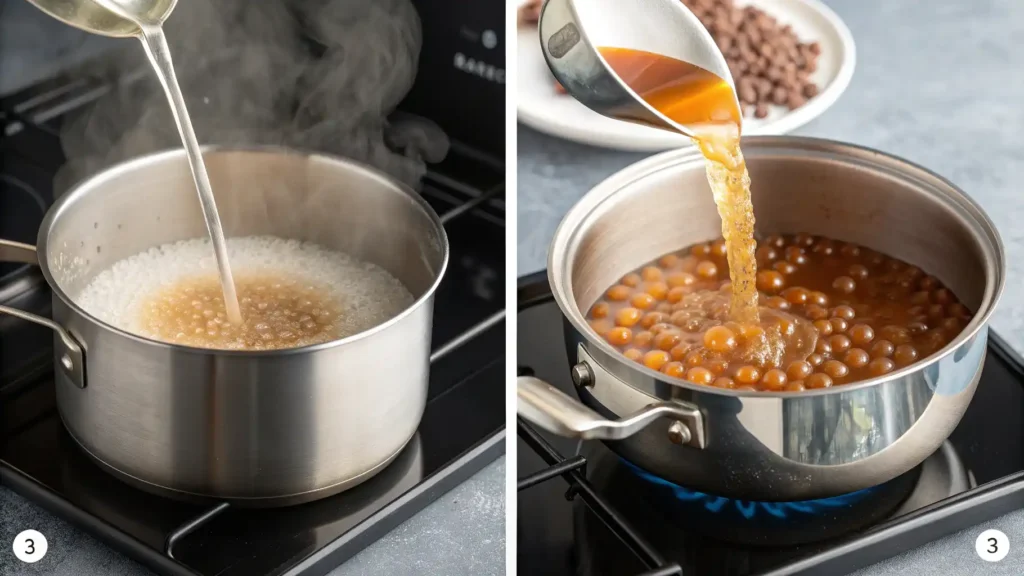 - Cook the pearls: Boil 4 cups water, add 1 cup tapioca pearls, cook 15–20 minutes until chewy, then drain and rinse.