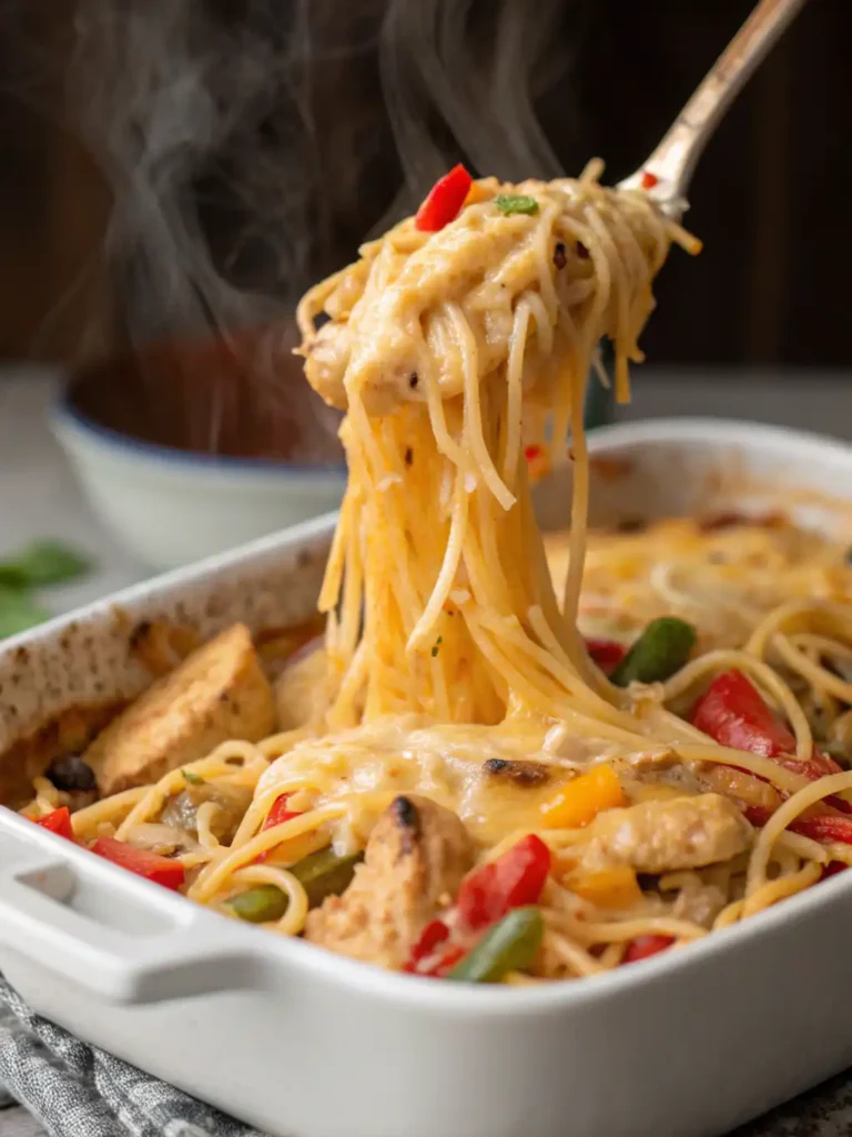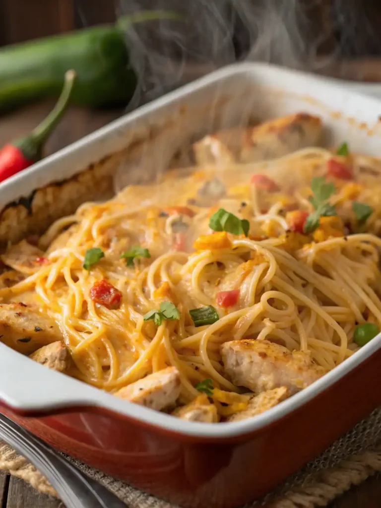 Swap chicken for turkey or shredded beef for variety. Use gluten-free spaghetti for a gluten-free version. Add vegetables like bell peppers or corn for extra nutrition. Mix in your favorite hot sauce for a spicier kick. Prepare the casserole ahead of time and store it in the fridge until baking. Serve with a sprinkle of fresh cilantro or parsley for a pop of color.
