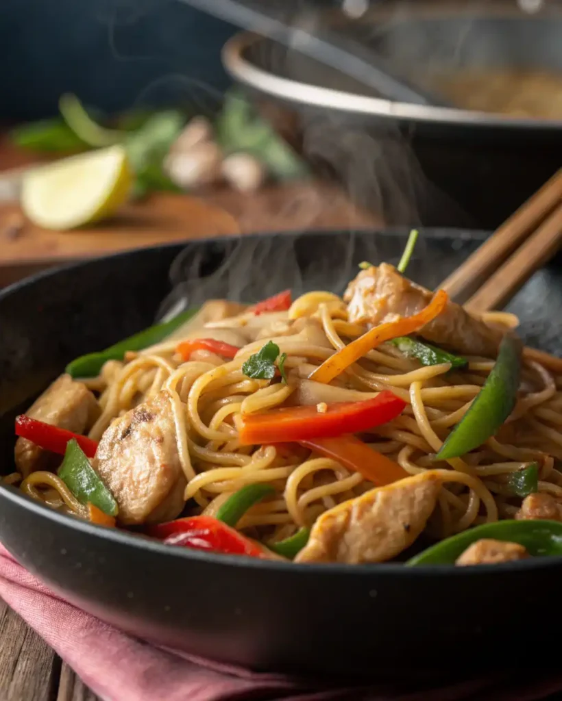 You can easily turn Chicken Lo Mein into a vegetarian dish by swapping out chicken for tofu or extra vegetables like mushrooms and baby corn, making it equally delicious!