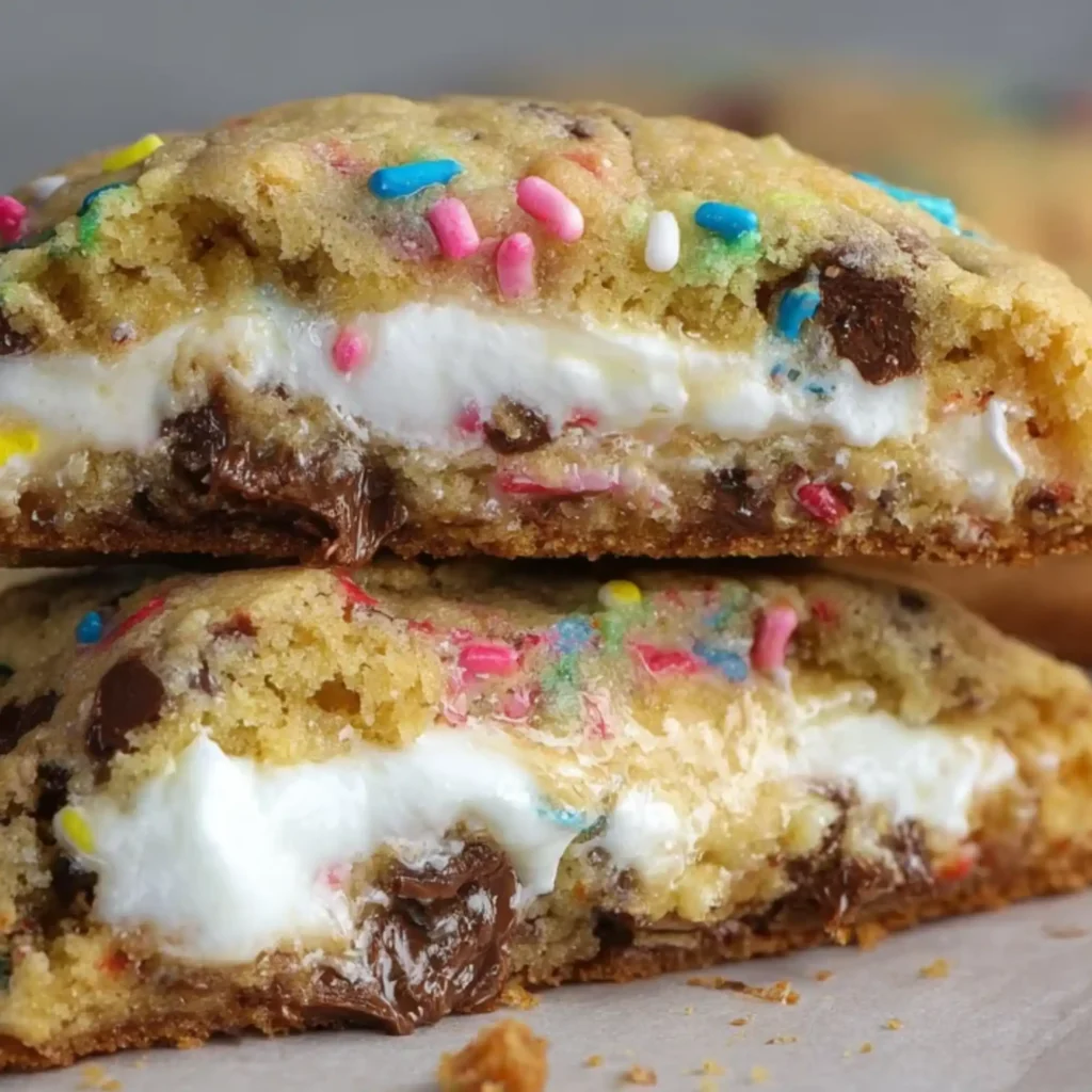 Delightful and soft chocolate chip cookies filled with gooey marshmallow Peeps, perfect for Easter festivities.