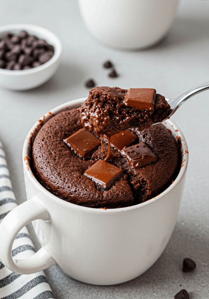 - Check and enjoy – Let the cake cool for 1–2 minutes. Use a spoon to dig in straight from the mug or top with whipped cream, ice cream, or fruit for an extra treat.