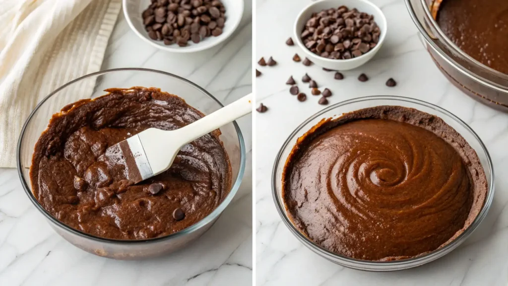- Fold in the grated zucchini and chocolate chips until evenly distributed.