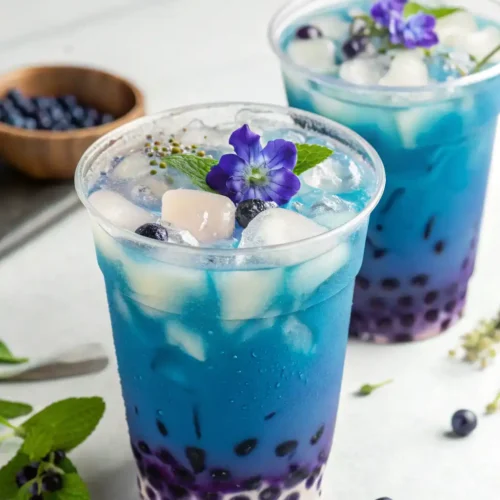 Butterfly boba tea is a drink made with butterfly pea flower tea and chewy tapioca pearls (boba). Often mixed with milk or plant-based alternatives like coconut milk, it’s known for its vibrant blue color and fun texture.