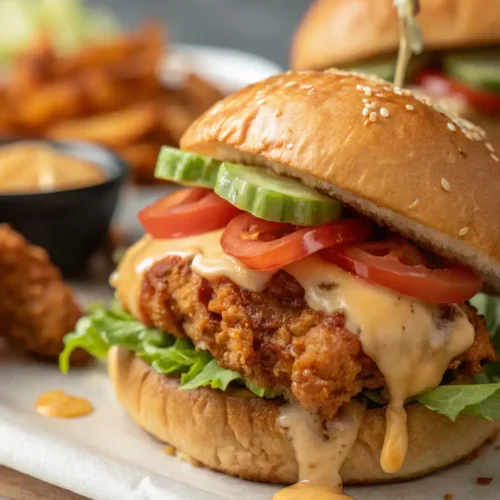 There’s something special about sitting down with family and enjoying a meal that feels both comforting and exciting. That’s exactly what this Crack Chicken Burger Recipe delivers. Picture juicy chicken breasts seasoned perfectly, topped with melted white cheddar, smoky bacon, and creamy ranch sauce, all tucked into a soft bun. It’s the kind of burger that turns an ordinary dinner into a delicious summer gathering, making it a go-to for Healthy Burger Meals and family cookouts.