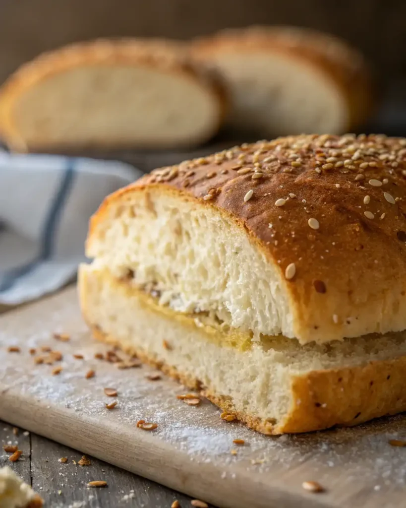 For extra flavor, add dried herbs like rosemary or thyme to the dough. You can replace half of the flour with whole wheat for a heartier loaf. Shredded cheese turns this bread into a delicious savory option. This loaf also makes excellent toast and holds up beautifully for grilled sandwiches.