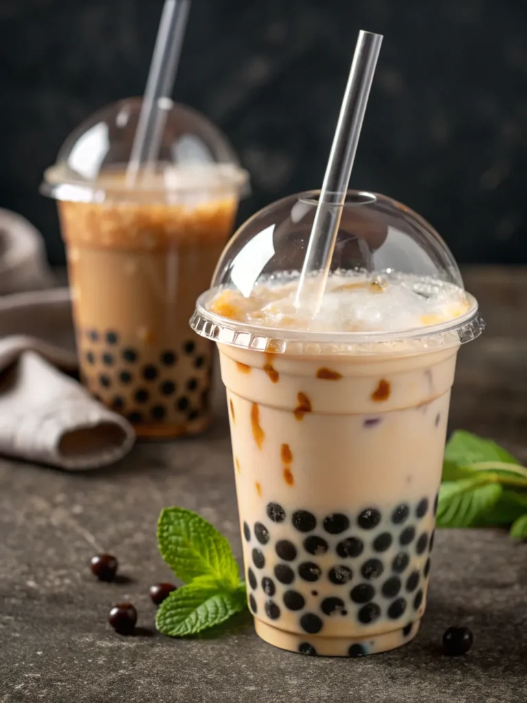 Boba milk tea is a sweet beverage made with tea, milk, sweeteners, and chewy tapioca pearls.