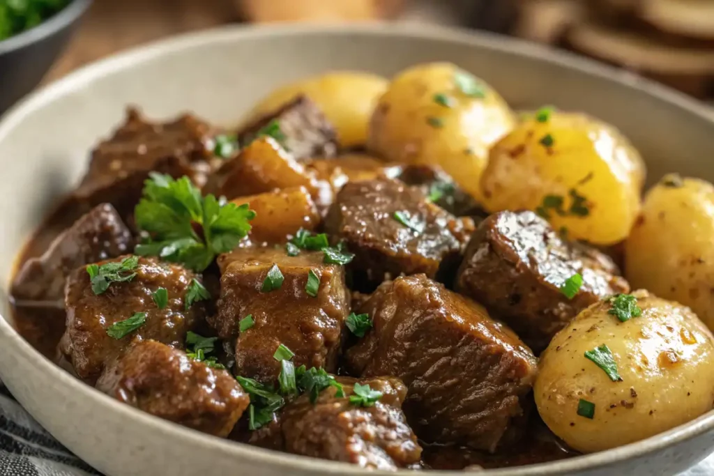 This Garlic Butter Beef Bites with Potatoes is so much more than just another dinner option. Its unique preparation method brings out the natural flavors of the beef while enhancing the potatoes’ crispy texture. The garlic butter creates a rich, savory aroma that envelops everything on the plate, making it not only appetizing but also incredibly comforting.