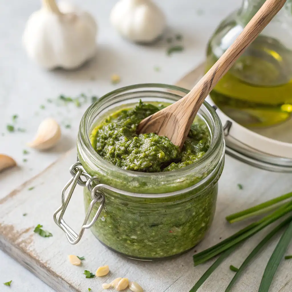 For a lighter option, chop garlic scapes finely and mix them into dressings, dips, or herb butters. They add a subtle garlic note without overpowering other flavors. Garlic scape pesto is another delicious way to serve them — spread it on toast or use as a sauce for grilled chicken or fish.