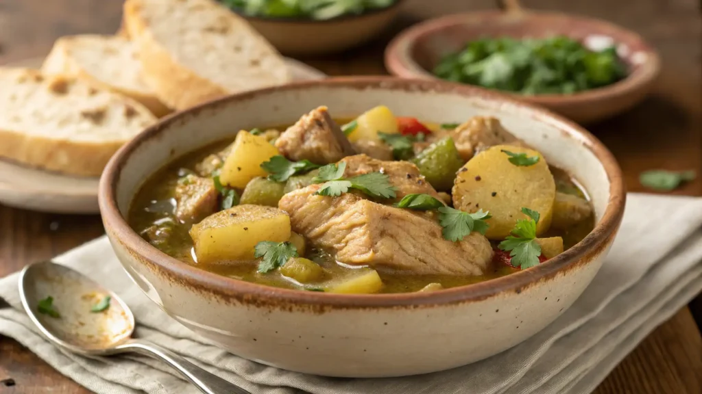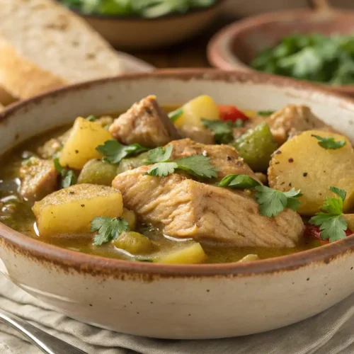 This comforting Green Chile Chicken Stew is loaded with tender chicken, green chiles, potatoes, and spices. It's hearty, flavorful, and perfect for chilly nights or meal prep.