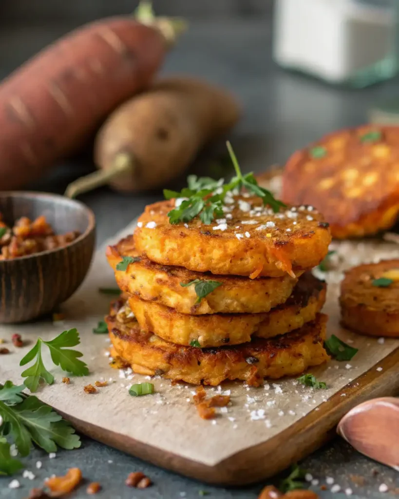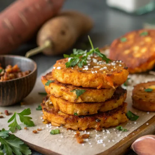 - Form potato mixture into small patties and cook 3–4 minutes per side until golden and crispy.