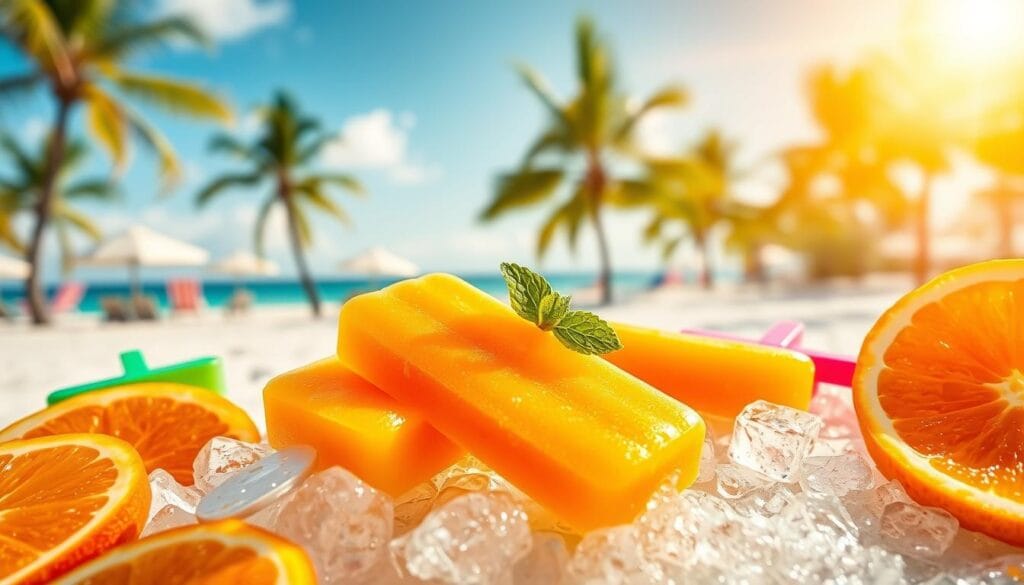 In the U.S., orange ice cream is a summer favorite. New flavors like orange cream and treats like the orange creamsicle made it even more popular. Whether you like gelato, sherbet, or popsicles, orange ice cream is a big part of American desserts.