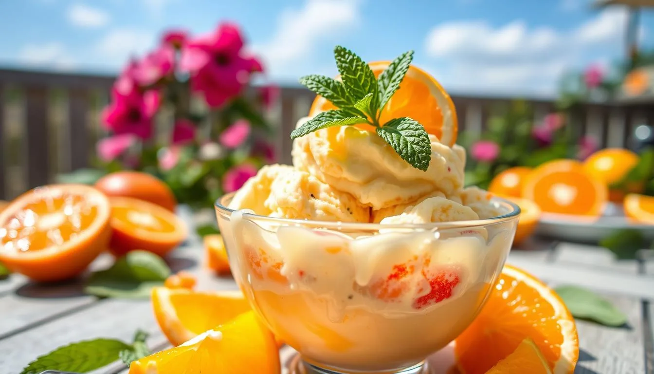 Follow these tips and use the right ingredients for creamy orange ice cream. Whether you’re making refreshing orange ice cream or homemade orange sorbet, experimenting is key. Find the perfect mix of ingredients and techniques for your taste.