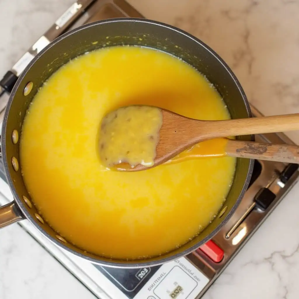 Making the glaze is easy. Just mix the mandarin orange juice and sugar in a small saucepan. Add thin slices of orange rind. Heat it over low heat for 8-10 minutes, until it thickens. This glaze is perfect for topping your cake, making it a beautiful and tasty dessert.
