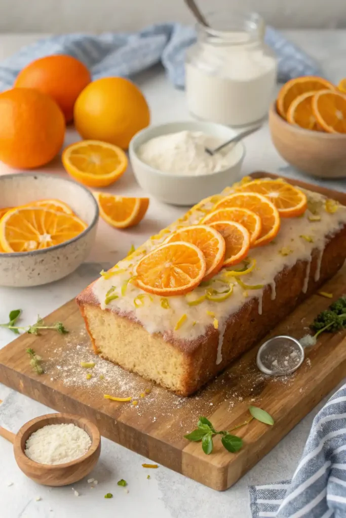 To make a moist orange cake, use flour, sugar, eggs, orange zest, juice, and olive oil. Add milk or yogurt. Fresh oranges give the best flavor. Simple ingredients make a big difference.