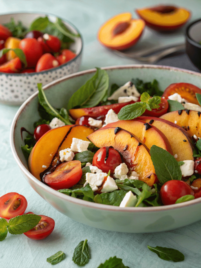 - Peach Salad with Burrata: Swap feta or goat cheese for creamy burrata for a rich, luxurious version.