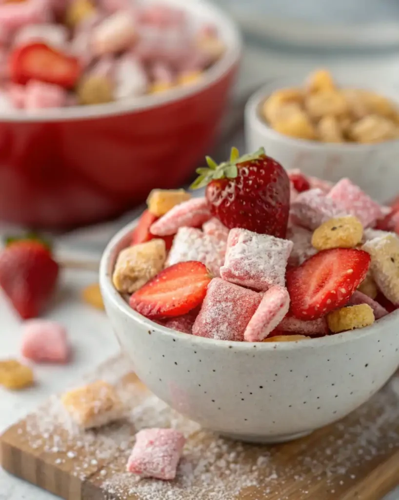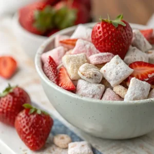 Why not take a moment to whip up a batch of Quick Strawberry Shortcake Puppy Chow? It’s the perfect blend of nostalgia and fun, a treat that will leave smiles on everyone’s faces!