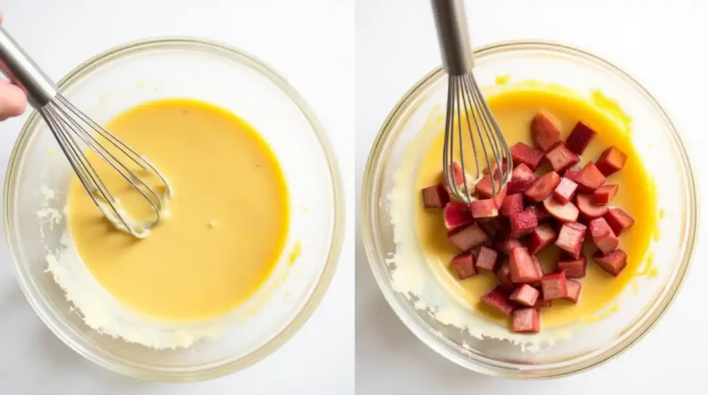 - Prepare the rhubarb: In a bowl, toss the chopped rhubarb with sugar and cornstarch (if using). Set aside to macerate while you prepare the custard.