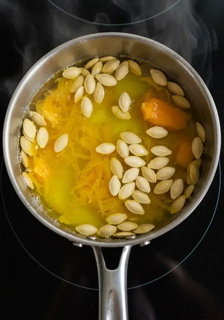 - After cleaning, place your pumpkin seeds in a saucepan.