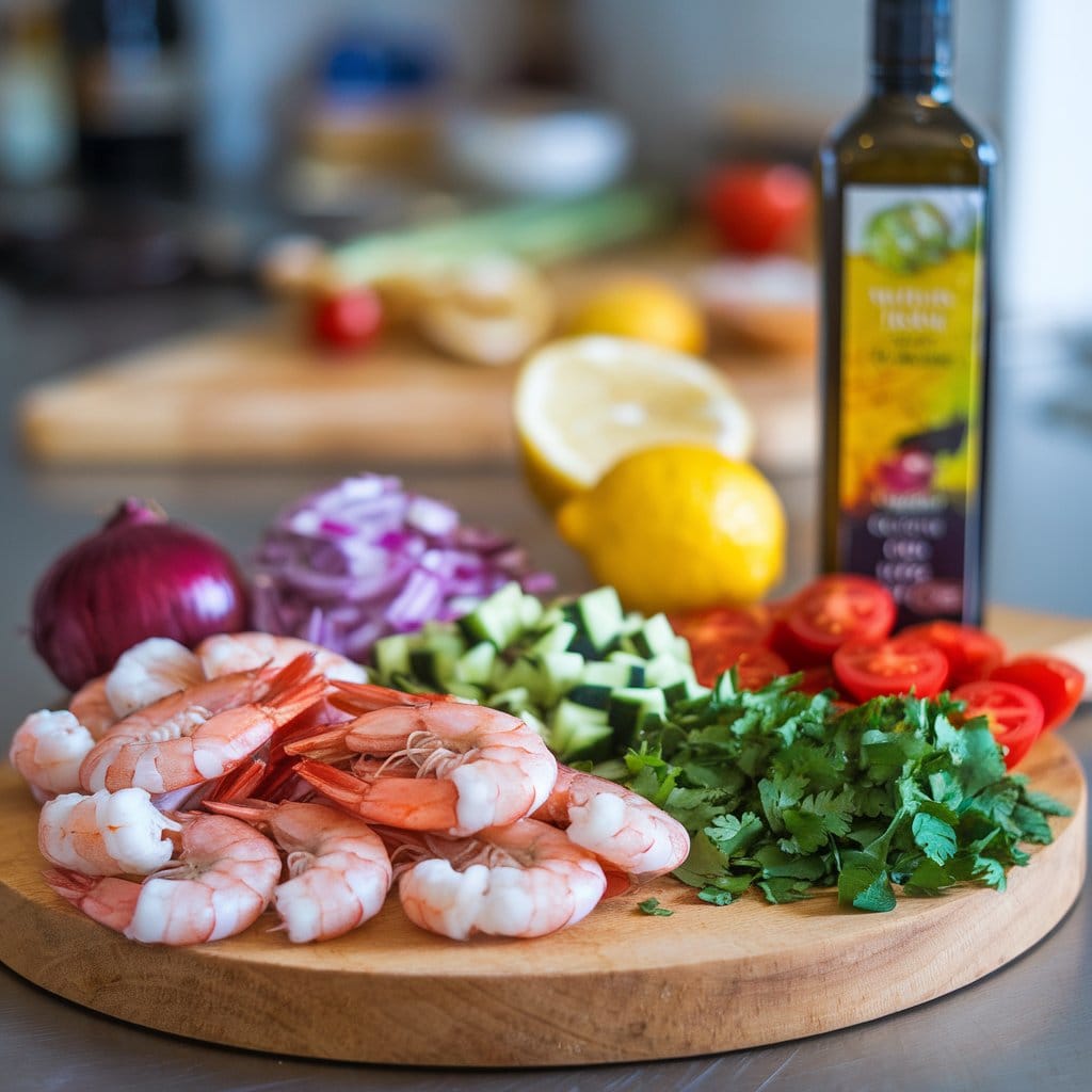 You’ll also need fresh produce for crunch and flavor. Red onion, celery, and bell peppers are great choices. Add diced avocado for a creamy shrimp avocado salad.
