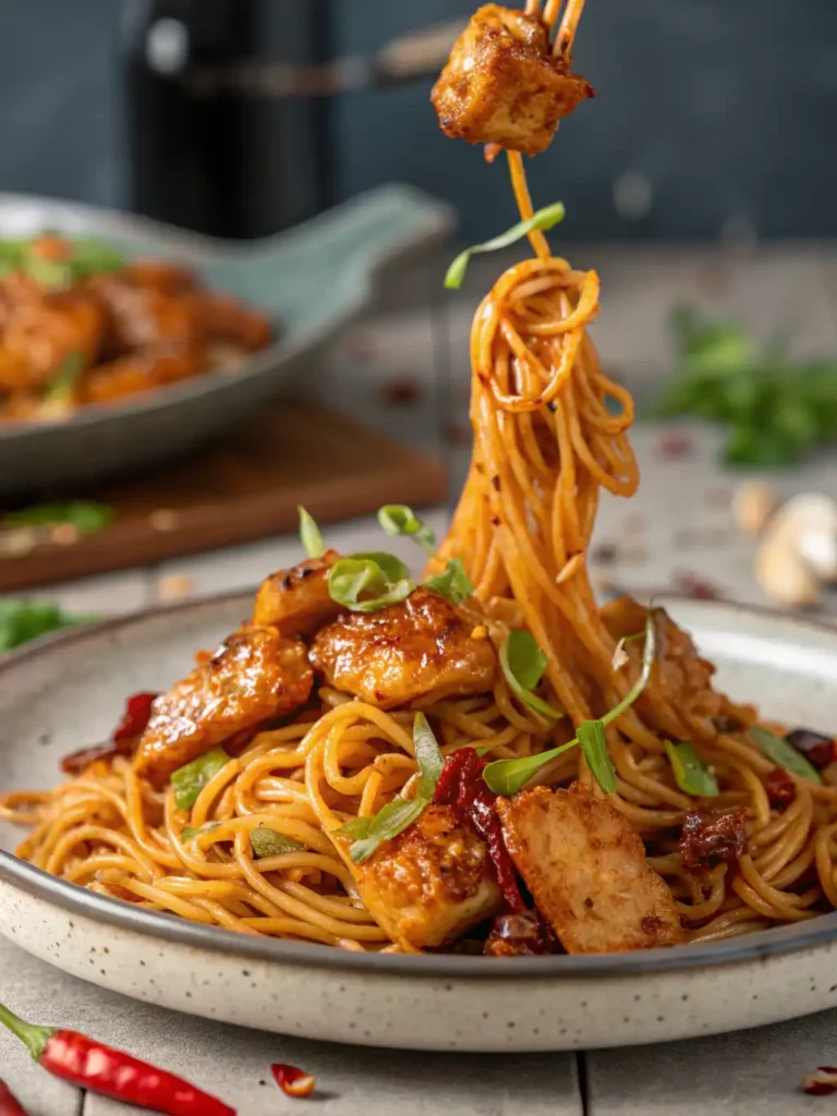 Cooked chicken noodles can be stored in an airtight container in the refrigerator for up to 2–3 days. Reheat gently to maintain the sauce’s stickiness.