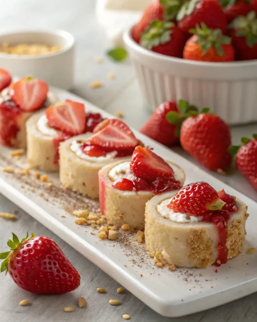- Creative twist: Classic strawberry shortcake turned into playful sushi rolls.