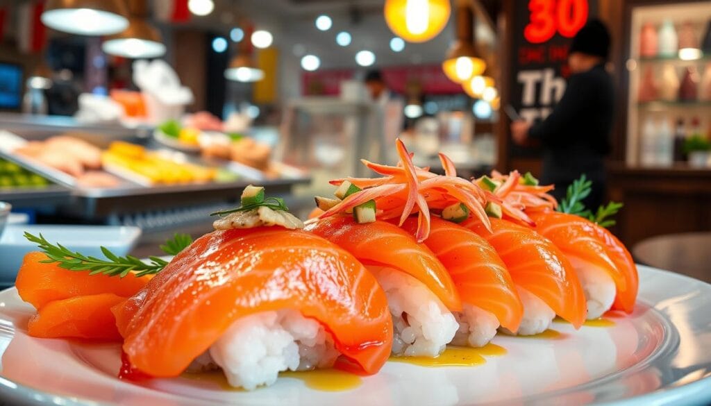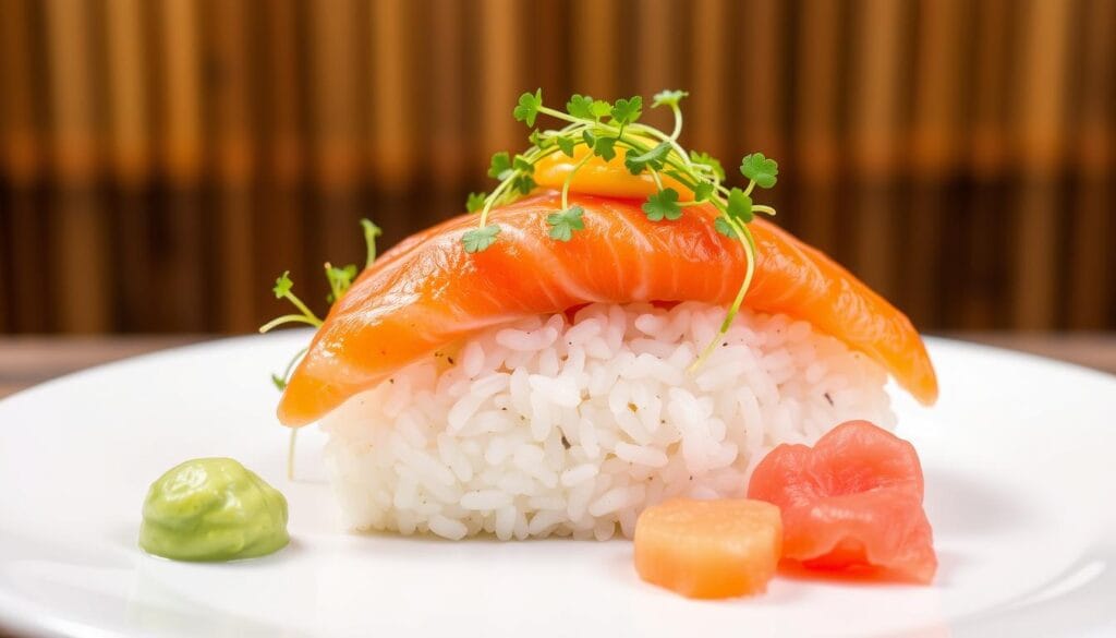 Exploring sushi topped with salmon is a journey through history and culinary art. Salmon sushi has become a favorite for many. The key is to choose fresh fish from trusted sources.