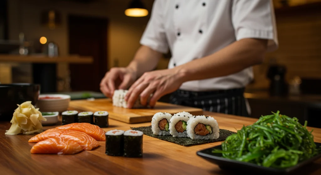 - Slicing Techniques: It’s important to slice ingredients like salmon and veggies thinly. This makes your sushi look good.