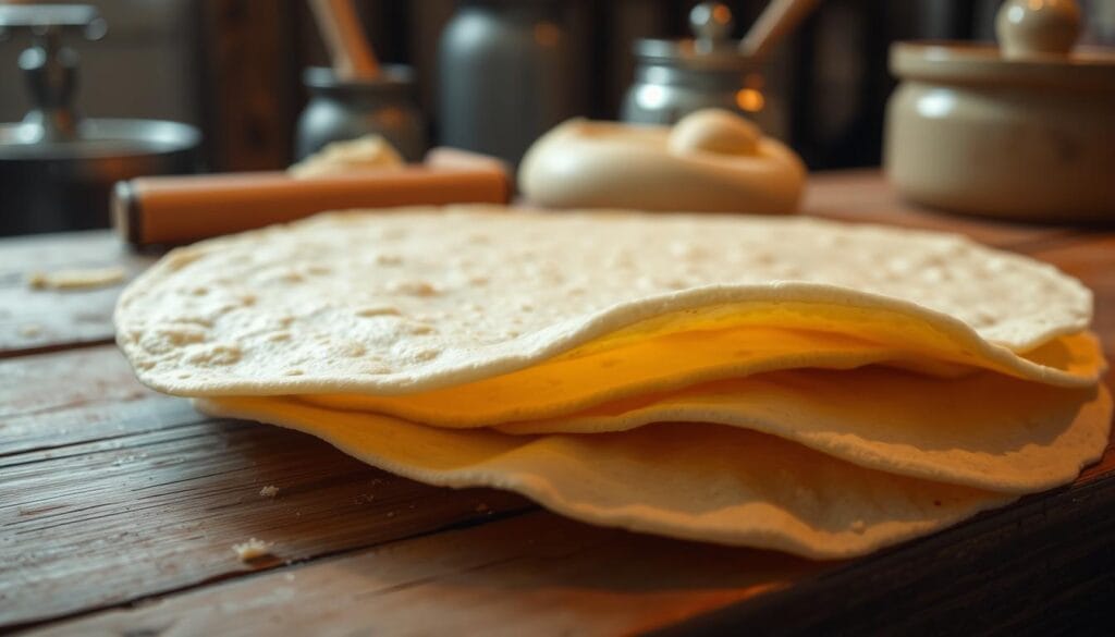 When making homemade tacos, tortillas are key. You can buy them or make your own. To make your own, you need 2 cups of masa harina, 1/2 cup of warm water, and 1/4 teaspoon of salt. Mix these ingredients until a dough forms. Then, knead for 5 minutes.