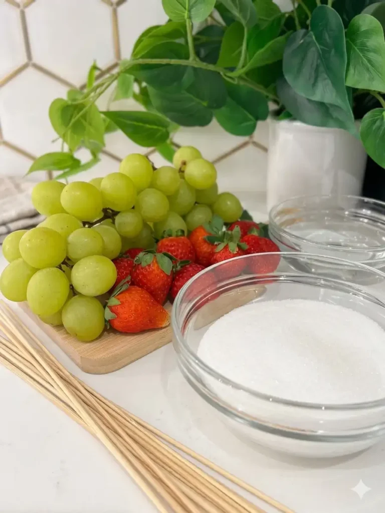 • 1 lb strawberries, grapes, or other fruit of choice (~30 pieces)